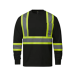 180 GSM - 5.3 oz./yd2 - 9 oz./lin. yd. 100% cotton jersey. Rib knit neckline with spandex for shape retention. Chest pocket. 2" retroreflective stripe with 4" fluorescent background stripe on front and back body and sleeves. Meets CSA standards. Side seamed.